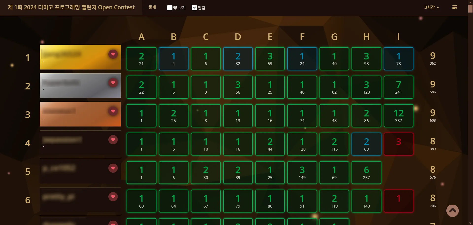 대회 스코어보드 페이지